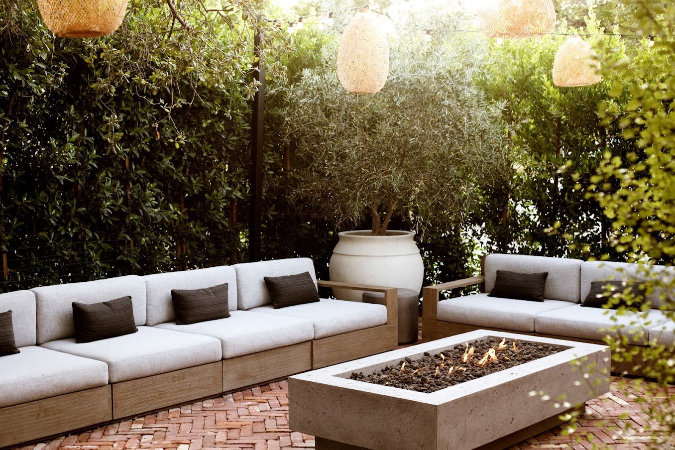 Aqui está uma lista muito incompleta dos tipos de materiais que você encontrará ao comprar móveis ao ar livre: teca, eucalipto, aço inoxidável, alumínio, ferro forjado, vime, resina sintética. Cada material tem prós e contras que o tornam ideal para certos climas e situações ao ar livre e não para outros. Considere os vários metais, por exemplo. O alumínio é leve, o que significa que não é ótimo para áreas que podem experimentar ventos fortes. O aço inoxidável é pesado e de baixa manutenção, mas pode ficar super quente quando colocado sob o sol, por isso não é o ideal se você planeja deixá-lo exposto.