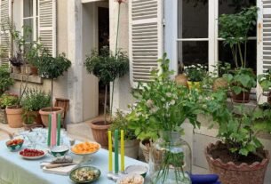 A resposta simples: adicione mais plantas e, em particular, mais flores. Além de uma hortênsia, o pátio era desprovido de cor. Depois de mover as latas de lixo para dentro de sua própria área de armazenamento e cobrir o hardscaping – tijolos e paralelepípedos estabelecidos em um padrão um tanto extravagante – com uma camada de cascalho, Laura e Nora voltaram sua atenção ao plantio. Mais hortênsias. Uma árvore de marmelo. Muito orégano. Casa da Moeda Americana, Hyssop, uma árvore de Aronia, rosas de escalada, lavanda, sálvia e oliveiras em vasos.