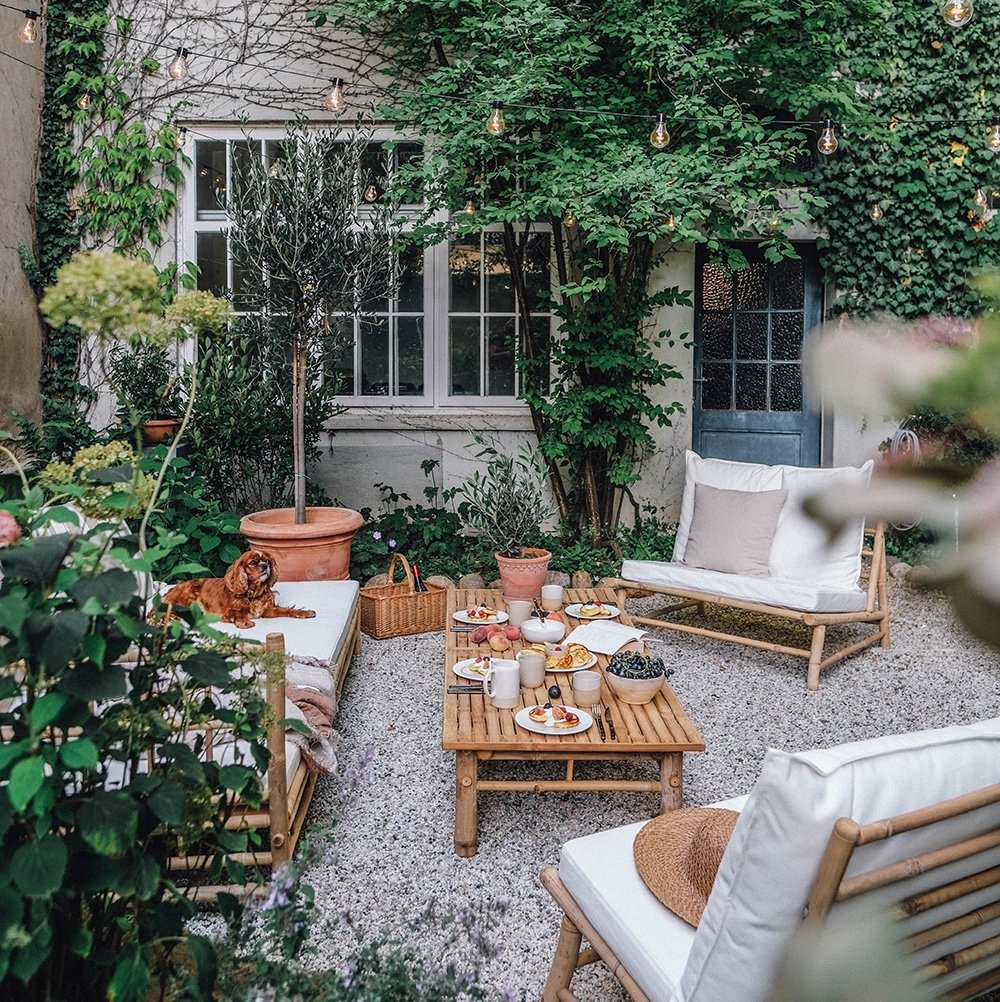 Depois de me mudar de mobília para criar espaços de vida e jantar ao ar livre e adicionar uma cozinha ao ar livre (a mais chique que vimos!), O pátio outrora negligenciado é agora o “pequeno jardim secreto”. Vamos fazer um passeio e role até o fim para ver o espaço em seu estado original, completo com lixeiras.